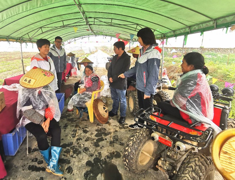 搜同 一行人走进农产品种植基地进行调研。搜同 党支部书记冯璐秀,搜同 领导刘晓翔、杨光华,党支部委员窦庆萍同休憩的农民们聊起家常,详细询问农民是哪里人、农场有哪些农作物,收成如何……