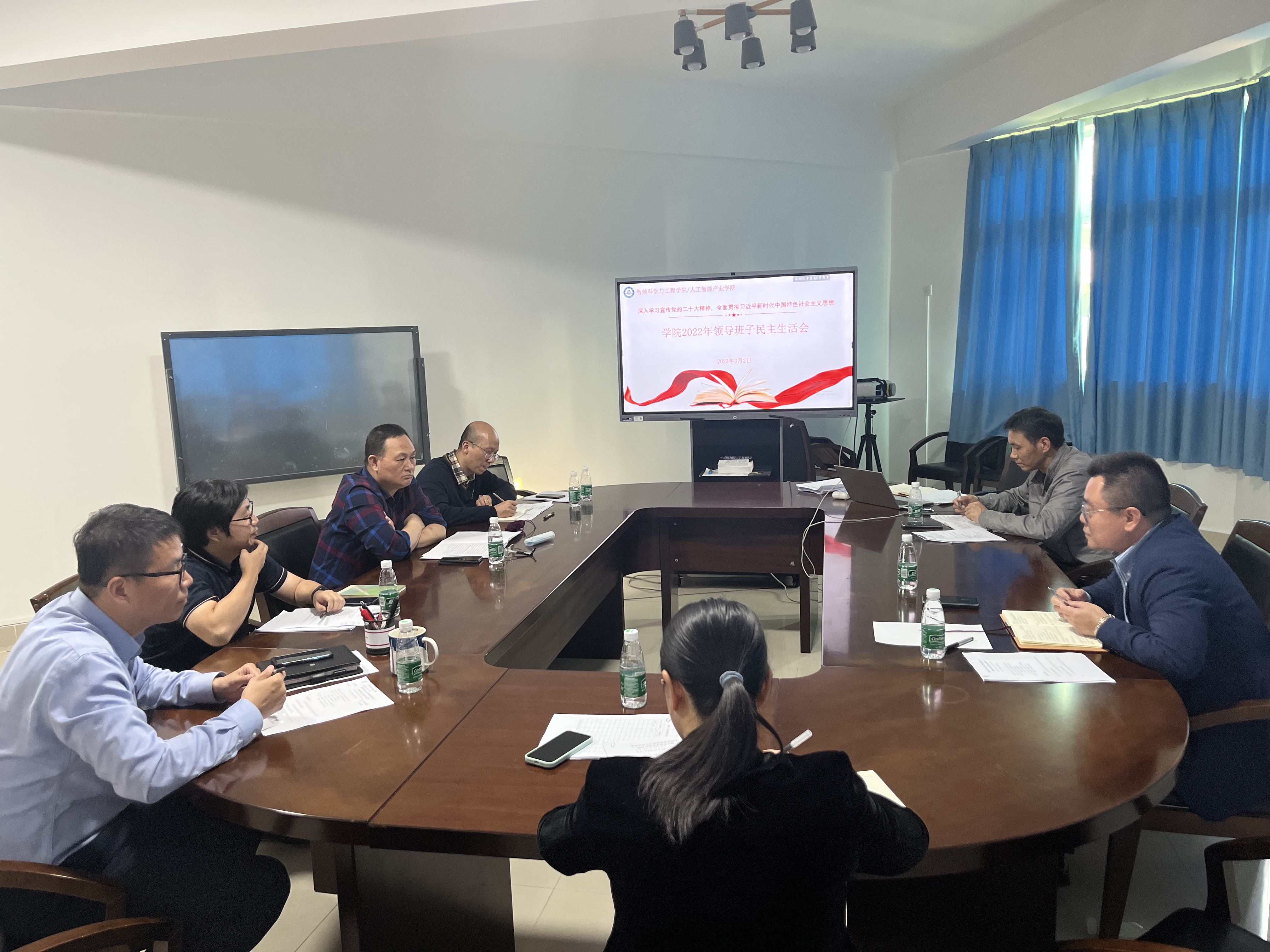 3月2日,搜同 领导班子2022年度专题民主生活会在行政楼648会议室召开。校区管委会执行主任屈挺同志到会督导,搜同 党总支副书记郑桂华主持了会议。院长柳宁,副院长刘晓翔、杨光华,党总支六级组织员周昌波,办公室主任刘煜琼列席了会议。