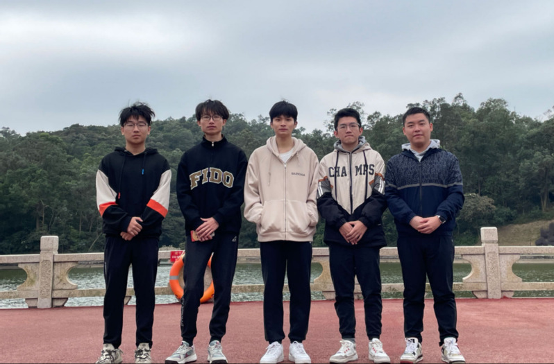 ASC24搜同 超算代表队队员合影(左起:吴祺佑、林俊明、唐铭洪、朱锦常、黄启睿)
